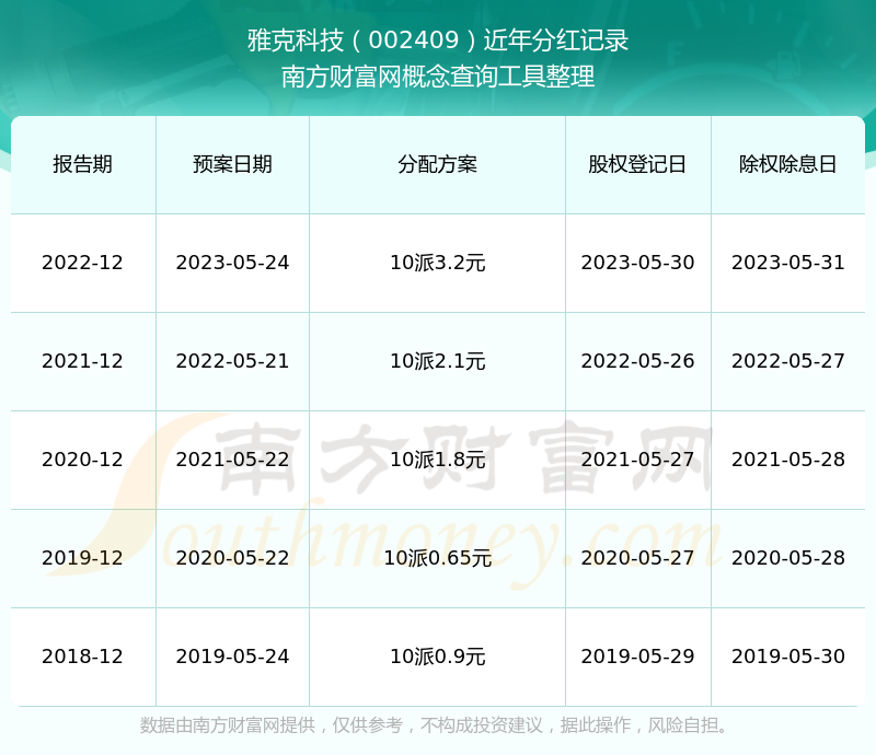 雅克科技最新一次公布的分红方案:10派3.2元。