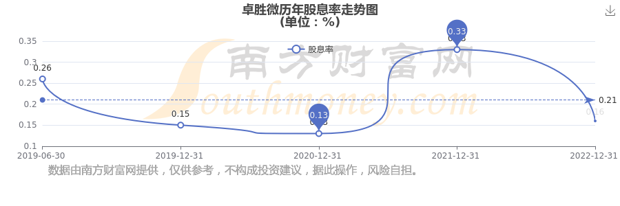 卓胜微最新一次公布的分红方案为10派1.7元。本次权益分派股权登记日为2023年6月6日,除权除息日为2023年6月7日,派息日为2023年6月7日。