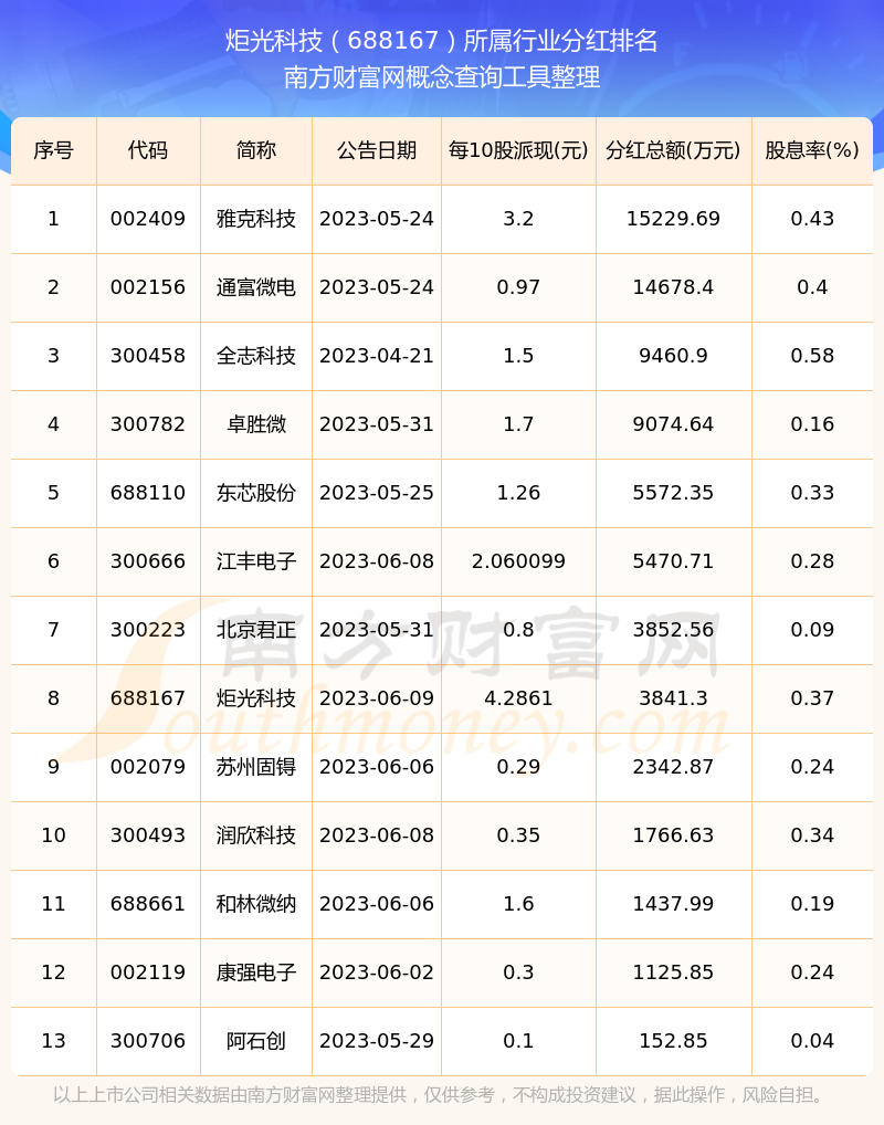 二、炬光科技688167行业分红排名