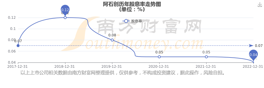 阿石创历年股息率走势如下图: