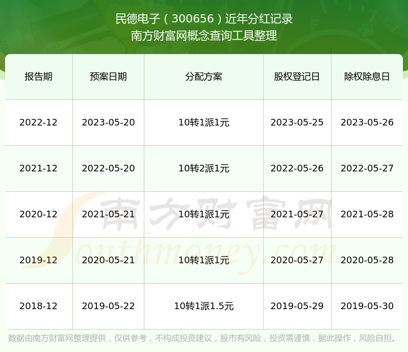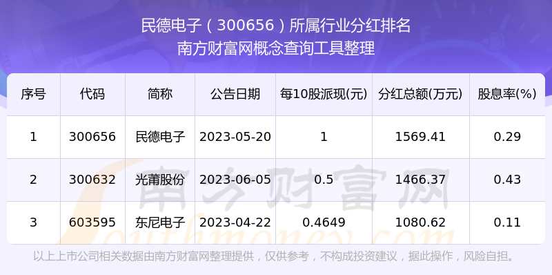 按照南方财富网趋势选股系统统计,民德电子所属行业为电子元件行业,电子元件行业分红排名情况如下表: