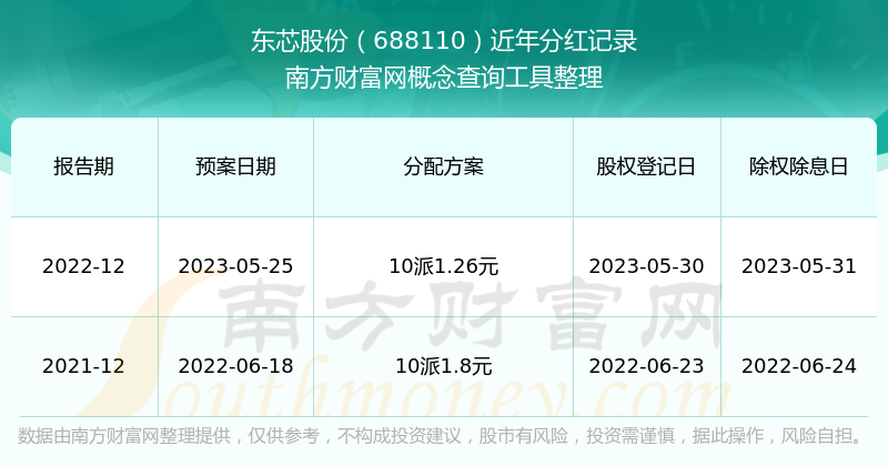 东芯股份最新一次公布的分红方案:10派1.26元。