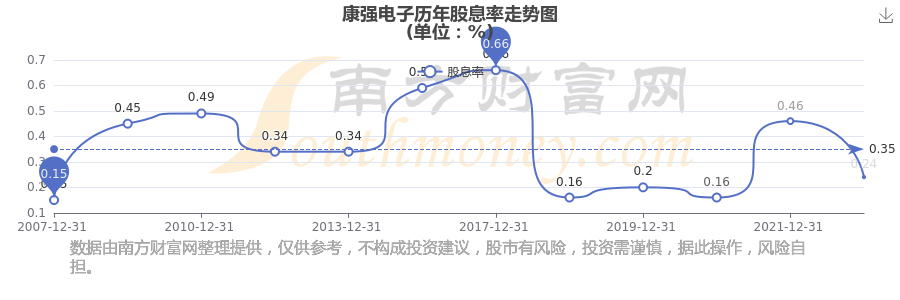 近年康强电子年度股息率走势如下图: