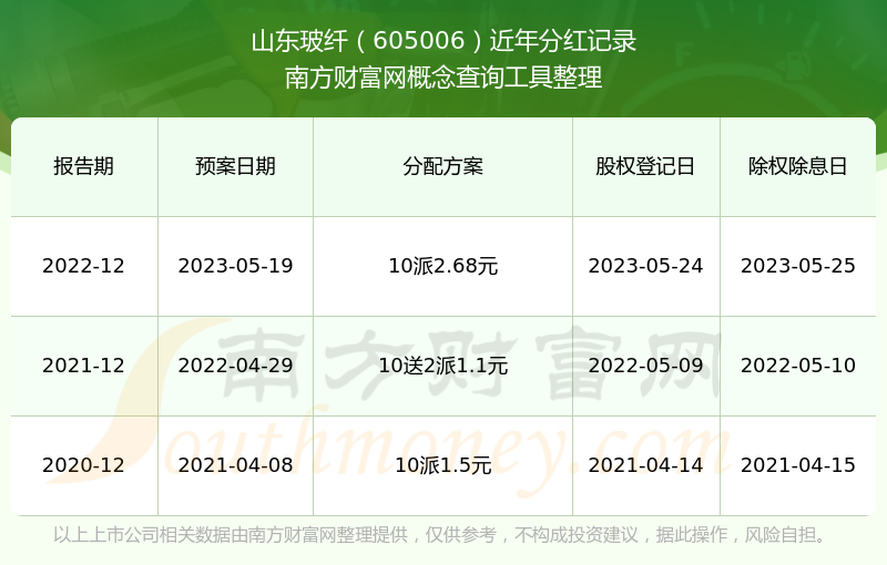 山东玻纤最新一次公布的分红方案:10派2.68元。