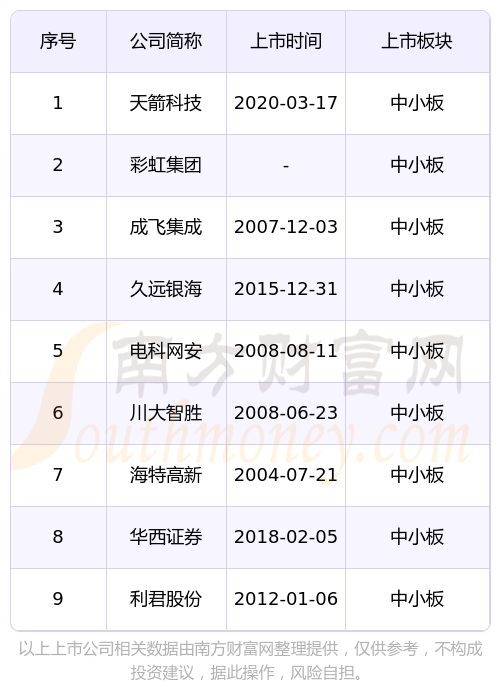 成都武侯区中小板上市企业名录(2024年7月20日)