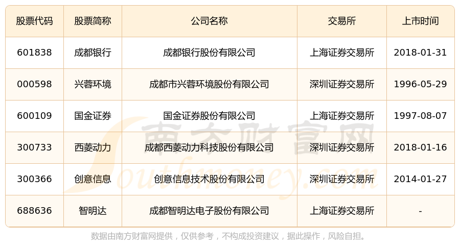 截至6月21日,成都青羊区共有6家上市公司,南方财富网趋势选股系统为您整理了成都青羊区在A股上市的公司。