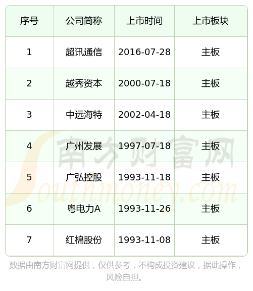 市值上来看,广州天河区主板上市公司市值排名情况:越秀资本414.42亿、粤电力A248.86亿、广州发展244.74亿、中远海特192.07亿、超讯通信78.92亿、红棉股份57.82亿、广弘控股35.09亿。