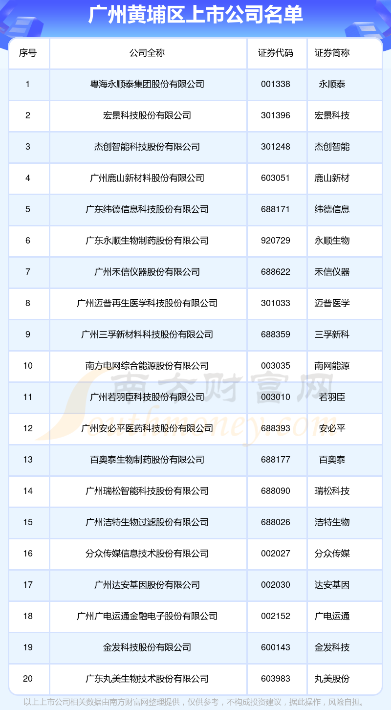 广州黄埔区的上市公司都有哪些?南方财富网趋势选股系统为您整理了归属于广州黄埔区,并且在A股上市的公司。