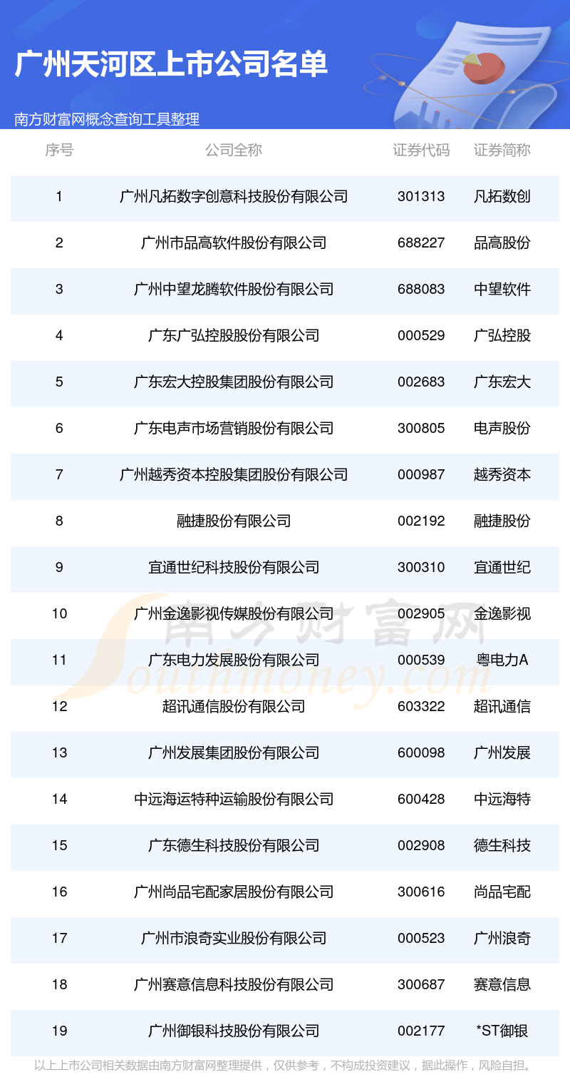 广州天河区的上市公司都有哪些?南方财富网趋势选股系统为您整理了归属于广州天河区,并且在A股上市的公司。