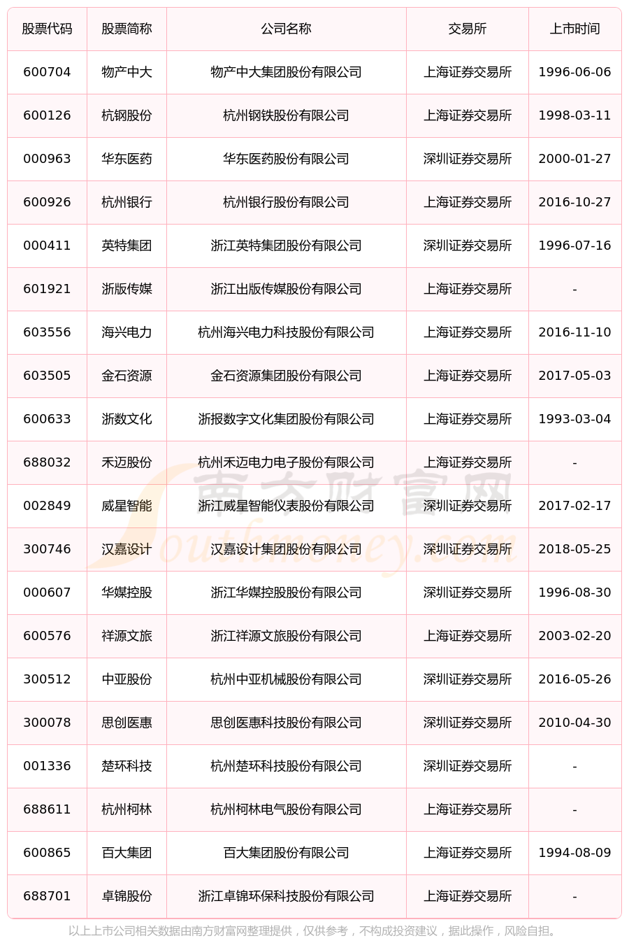 截至10月18日,杭州拱墅区共有20家上市公司,南方财富网趋势选股系统为您整理了杭州拱墅区在A股上市的公司。