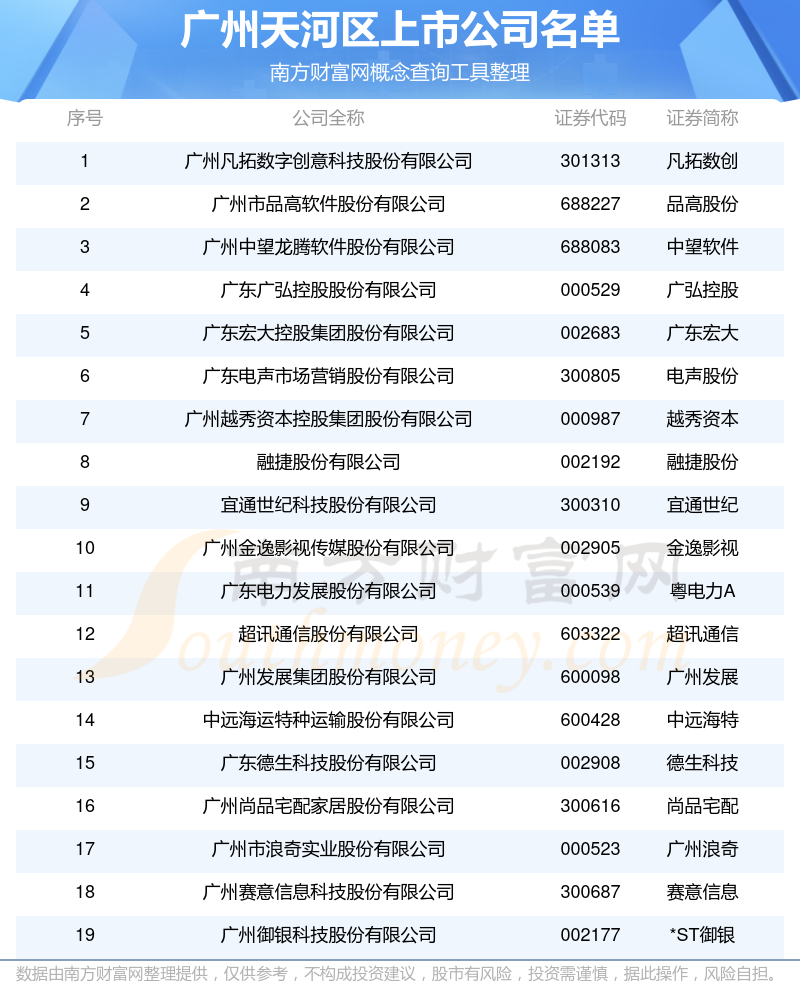 广州天河区的上市公司都有哪些?南方财富网趋势选股系统为您整理了归属于广州天河区,并且在A股上市的公司。