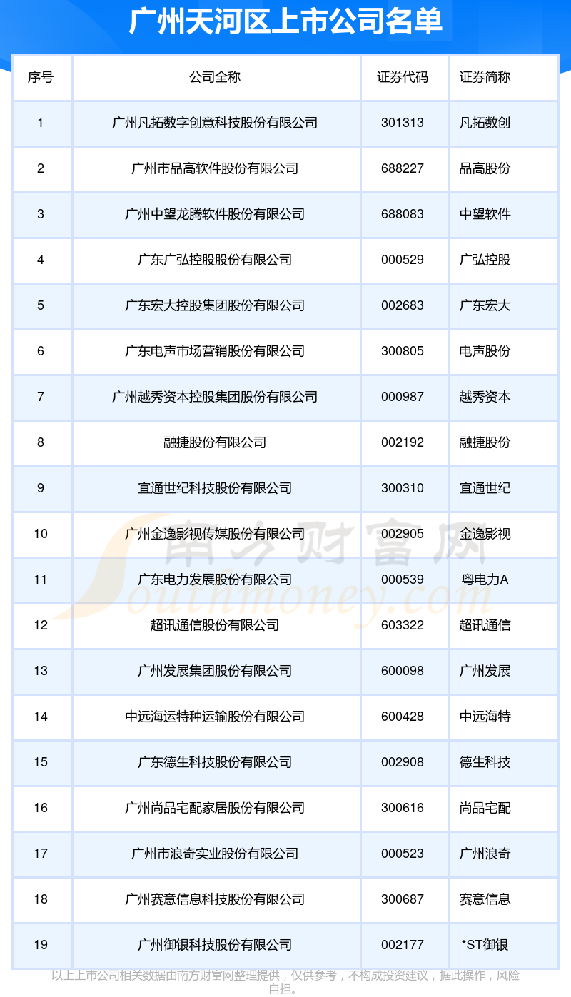 广州天河区的上市公司都有哪些?南方财富网趋势选股系统为您整理了归属于广州天河区,并且在A股上市的公司。