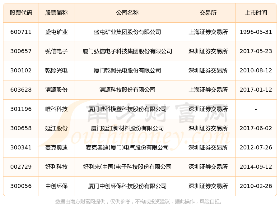 截至10月21日,厦门翔安区共有9家上市公司,南方财富网趋势选股系统为您整理了厦门翔安区在A股上市的公司。