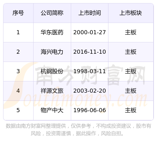 市值上,杭州拱墅区主板上市公司市值排名情况:华东医药704.59亿、物产中大310.27亿、杭钢股份305.3亿、海兴电力141.94亿、祥源文旅75.19亿。
