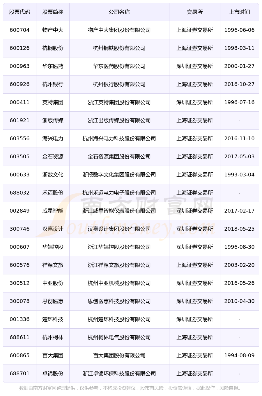 截至10月22日,杭州拱墅区共有20家上市公司,南方财富网趋势选股系统为您整理了杭州拱墅区在A股上市的公司。