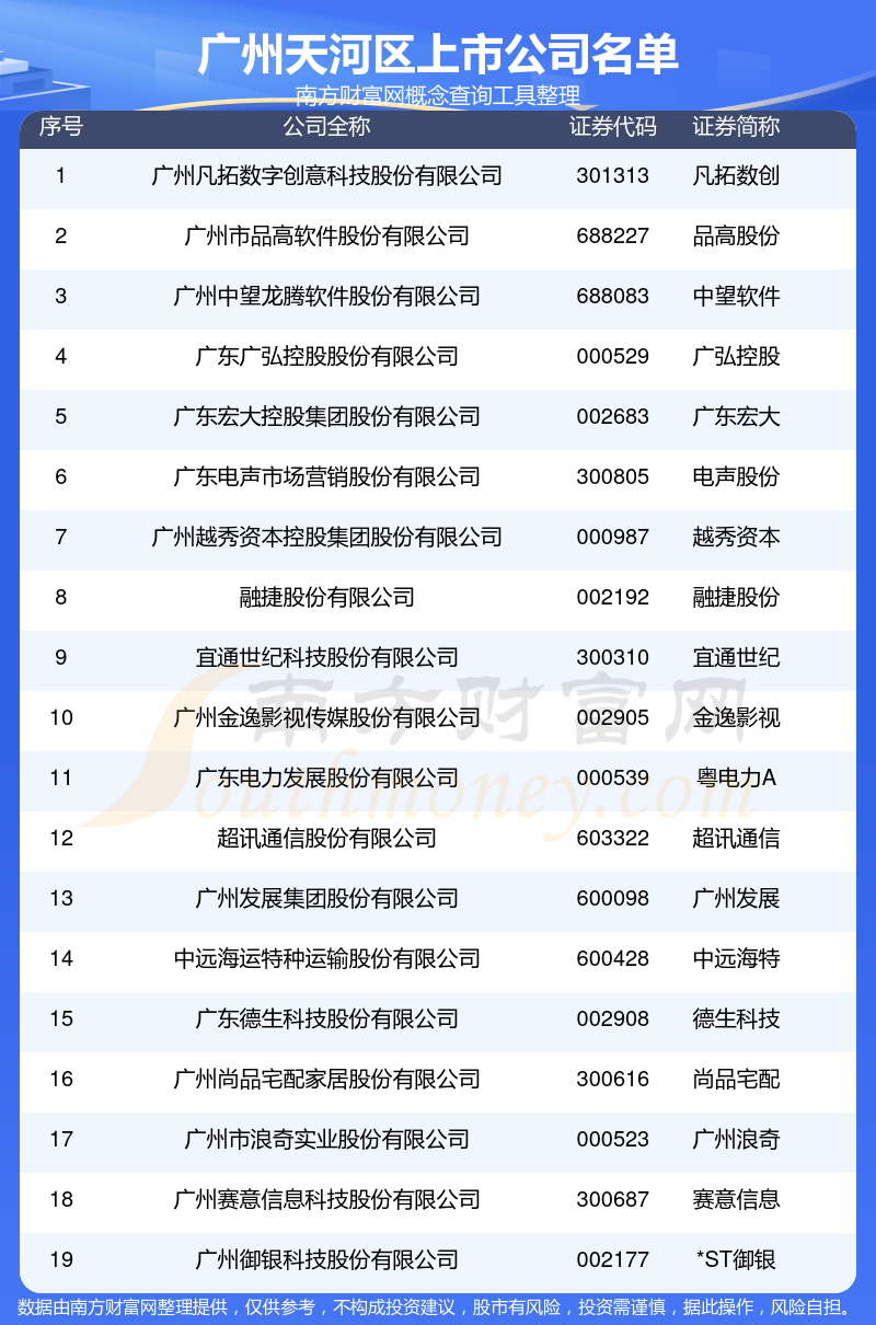 广州天河区的上市公司都有哪些?南方财富网趋势选股系统为您整理了归属于广州天河区,并且在A股上市的公司。