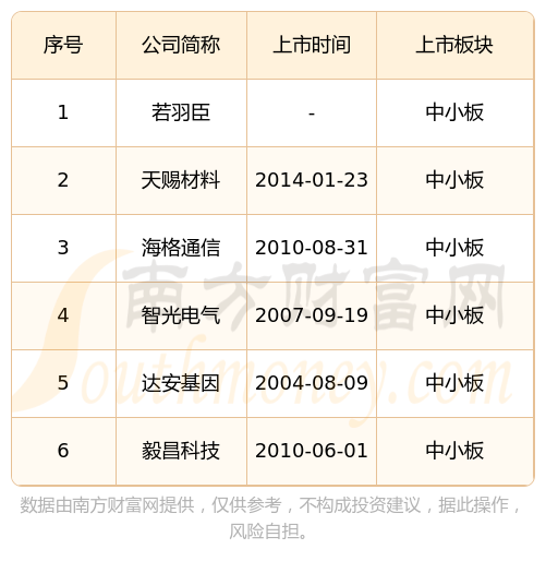 市值上来看,广州黄埔区中小板上市公司市值排名情况:天赐材料630.21亿、海格通信289.88亿、若羽臣131.76亿、达安基因90.94亿、智光电气61.13亿、毅昌科技32.04亿。