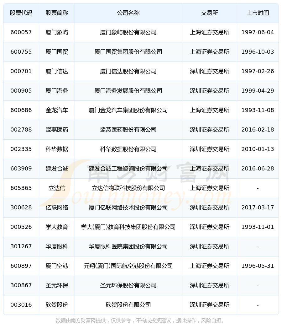 截至10月22日,厦门湖里区共有15家上市公司,南方财富网趋势选股系统为您整理了厦门湖里区在A股上市的公司。