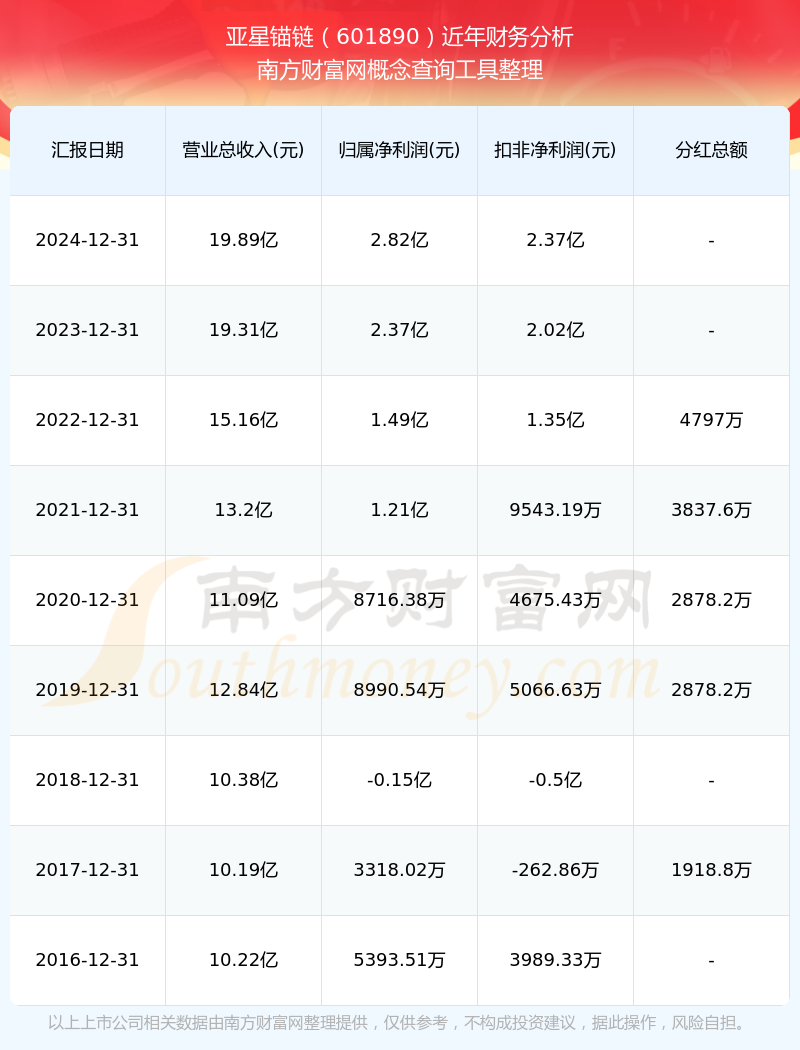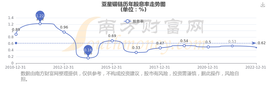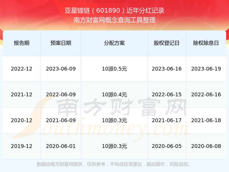 亚星锚链最新一次公布的分红方案:10派0.5元。