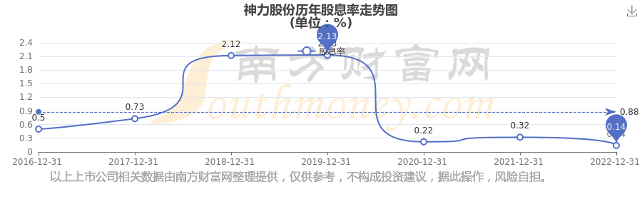 神力股份历年股息率走势如下图: