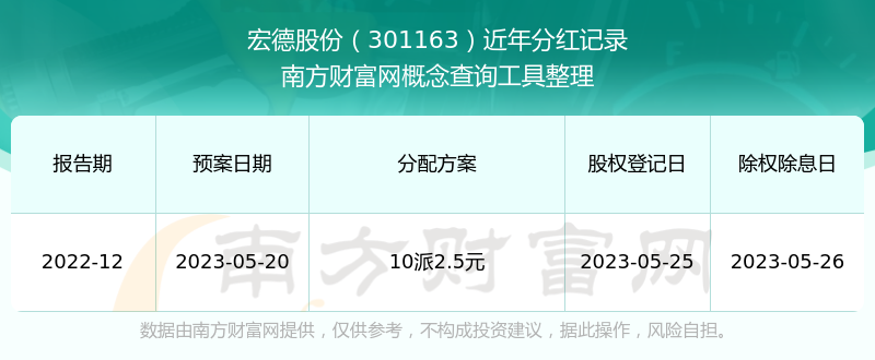 宏德股份最新一次公布的分红方案:10派2.5元。