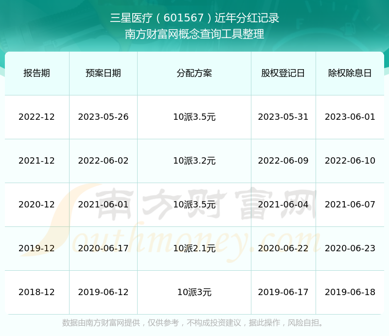 三星医疗最新一次公布的分红方案:10派3.5元。