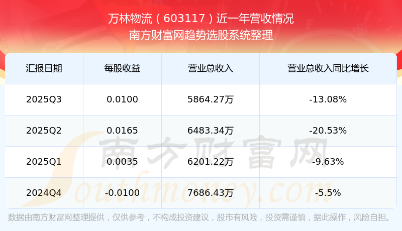 按照南方财富网概念查询工具统计,该股所属板块为物流行业板块,该板块共有57只股票,万林物流2025第三季度营收在该板块中排名为第56名,该板块2025第三季度营收排名前十的股票如下表: