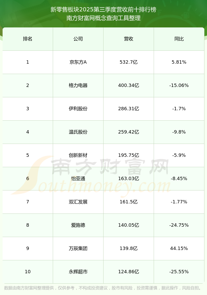 按照南方财富网概念查询工具统计,该股所属板块为新零售板块,该板块共有207只股票,金健米业2025第三季度营收在该板块中排名为第94名,该板块2025第三季度营收排名前十的股票如下表: