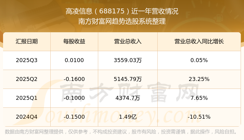2025年第三季度,高凌信息营收同比0.05%,净利润同比105.46%。