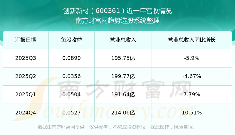 创新新材股票近一年营收情况如下表: