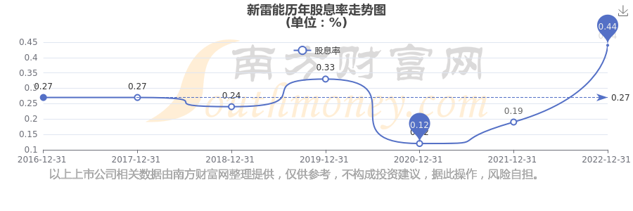 新雷能历年股息率走势如下图: