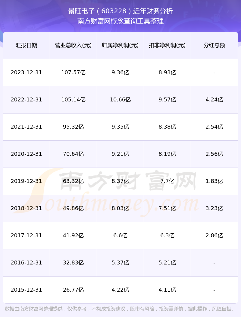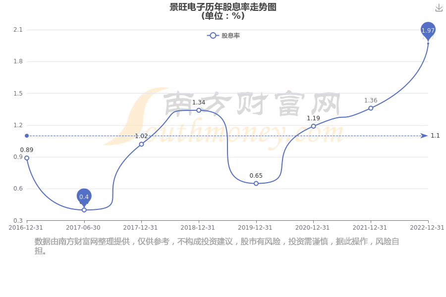 景旺电子最新一次公布的分红方案为10派5元。本次权益分派股权登记日为2023年6月6日,除权除息日为2023年6月7日,派息日为2023年6月7日。