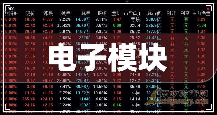据南方财富网概念查询工具数据显示,电子模块受益概念股有: