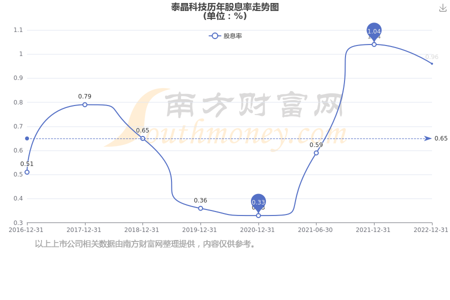 近年泰晶科技年度股息率走势如下图: