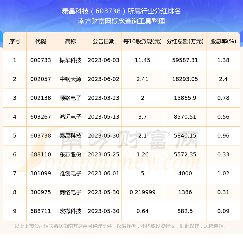 二、泰晶科技603738行业分红排名