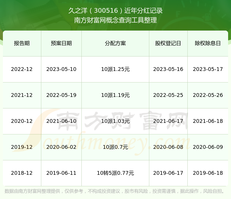 二、久之洋300516行业分红排名
