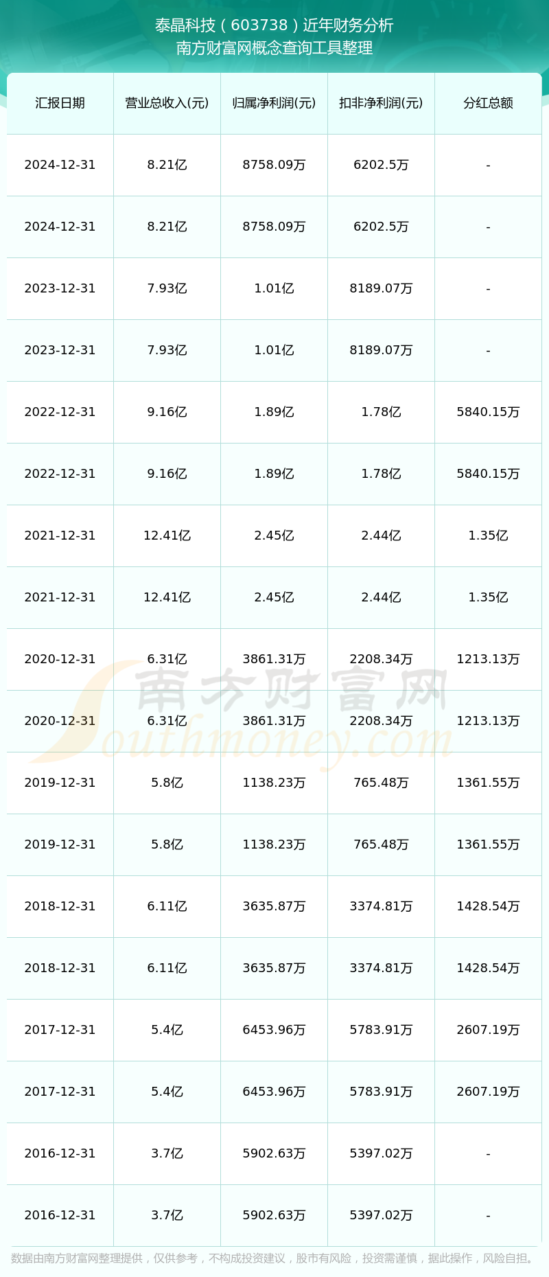 泰晶科技财务分析如下图: