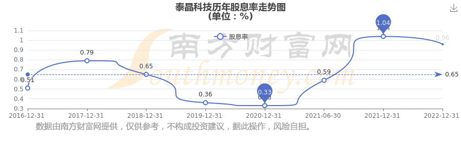 泰晶科技历年股息率走势如下图: