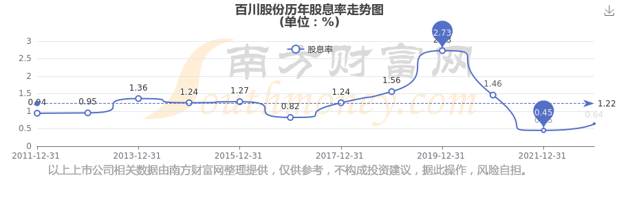 百川股份最新一次公布的分红方案为10派0.5元。本次权益分派股权登记日为2023年5月12日,除权除息日为2023年5月15日,派息日为2023年5月15日。