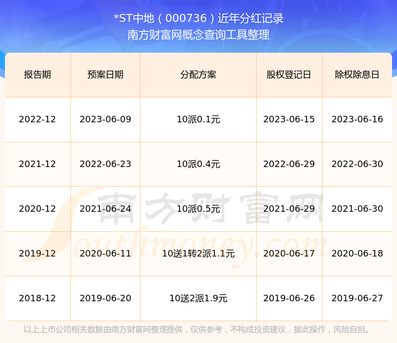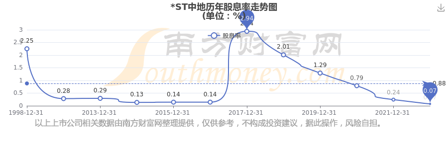 *ST中地最新一次公布的分红方案:10派0.1元。