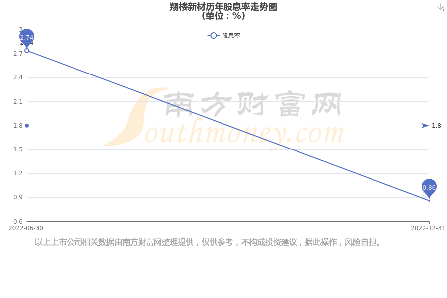 翔楼新材历年股息率走势如下图: