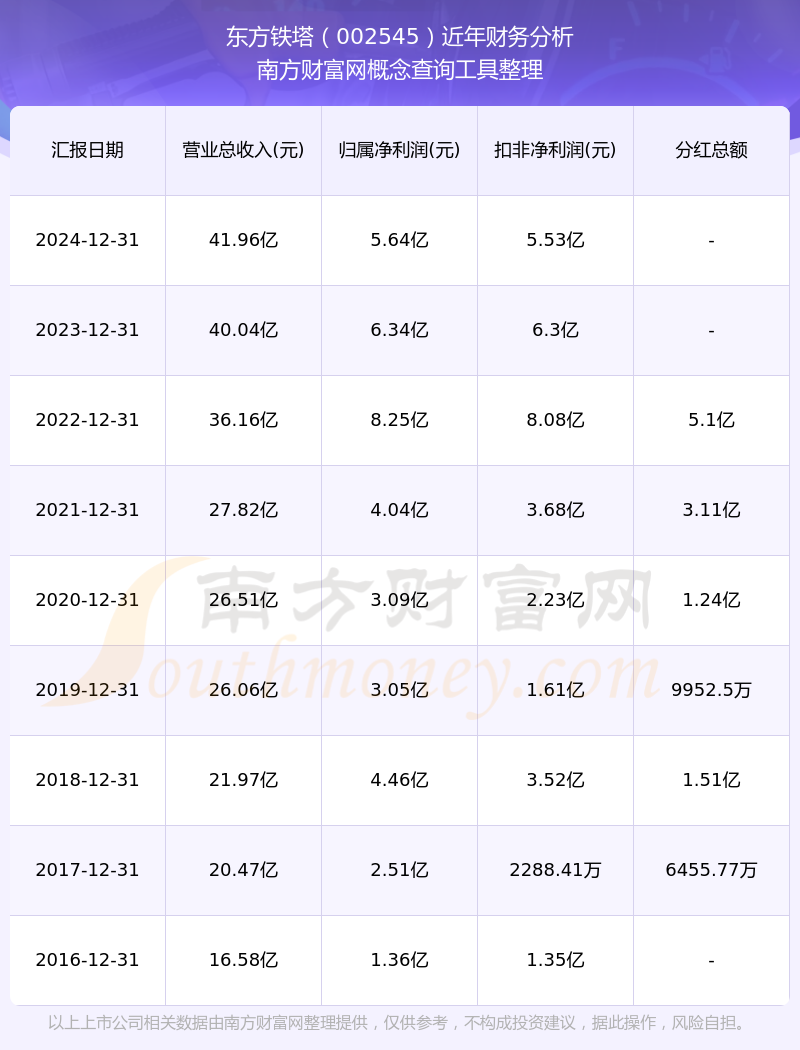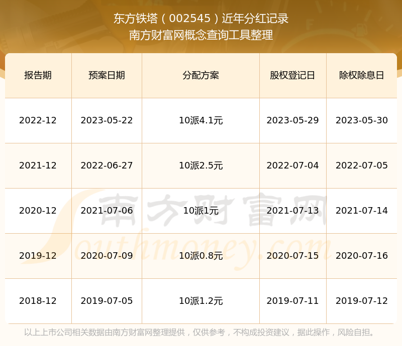 东方铁塔最新一次公布的分红方案:10派4.1元。