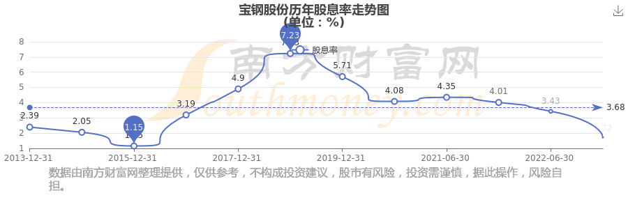 宝钢股份历年股息率走势如下图: