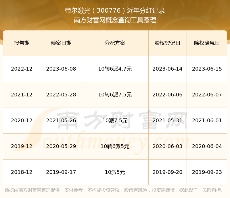 帝尔激光300776分红时间: