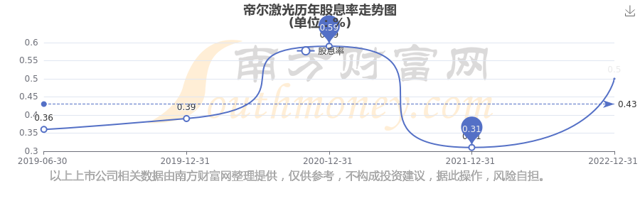 帝尔激光历年股息率走势如下图: