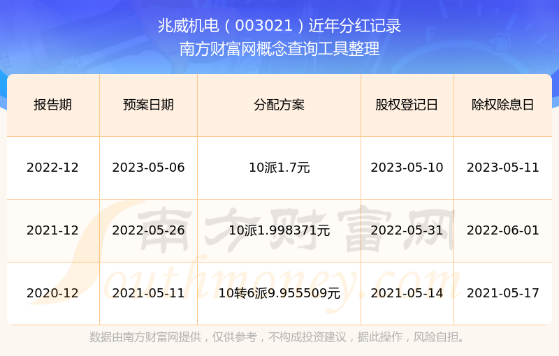 兆威机电最新一次公布的分红方案:10派1.7元。