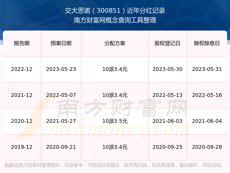 交大思诺最新一次公布的分红方案:10派3.4元。