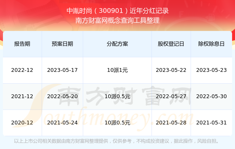 中胤时尚最新一次公布的分红方案:10派1元。