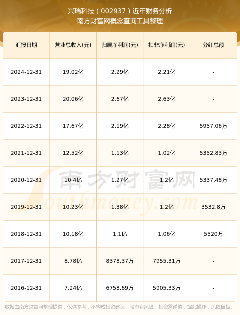 兴瑞科技最新一次公布的分红方案:10派2元。