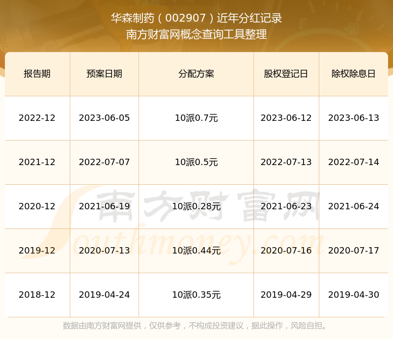 华森制药历年分红派息情况如下表所示: